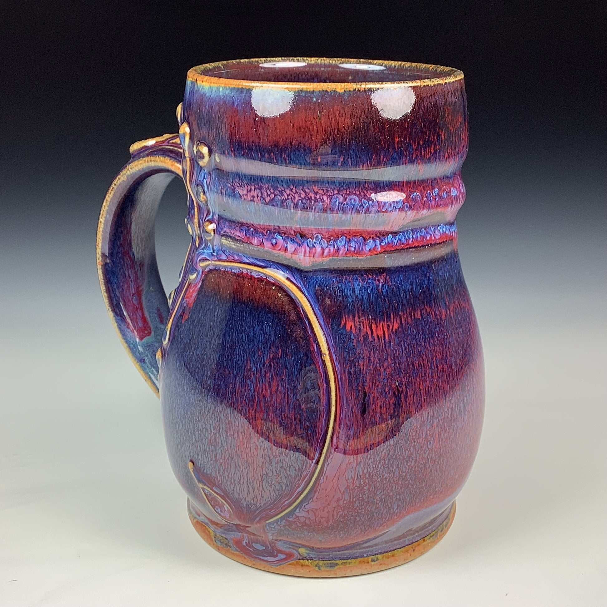 Handmade Stoneware Coffee Mug: Red Purple Glaze, Slip-Dotted Bamboo - Mug 3975