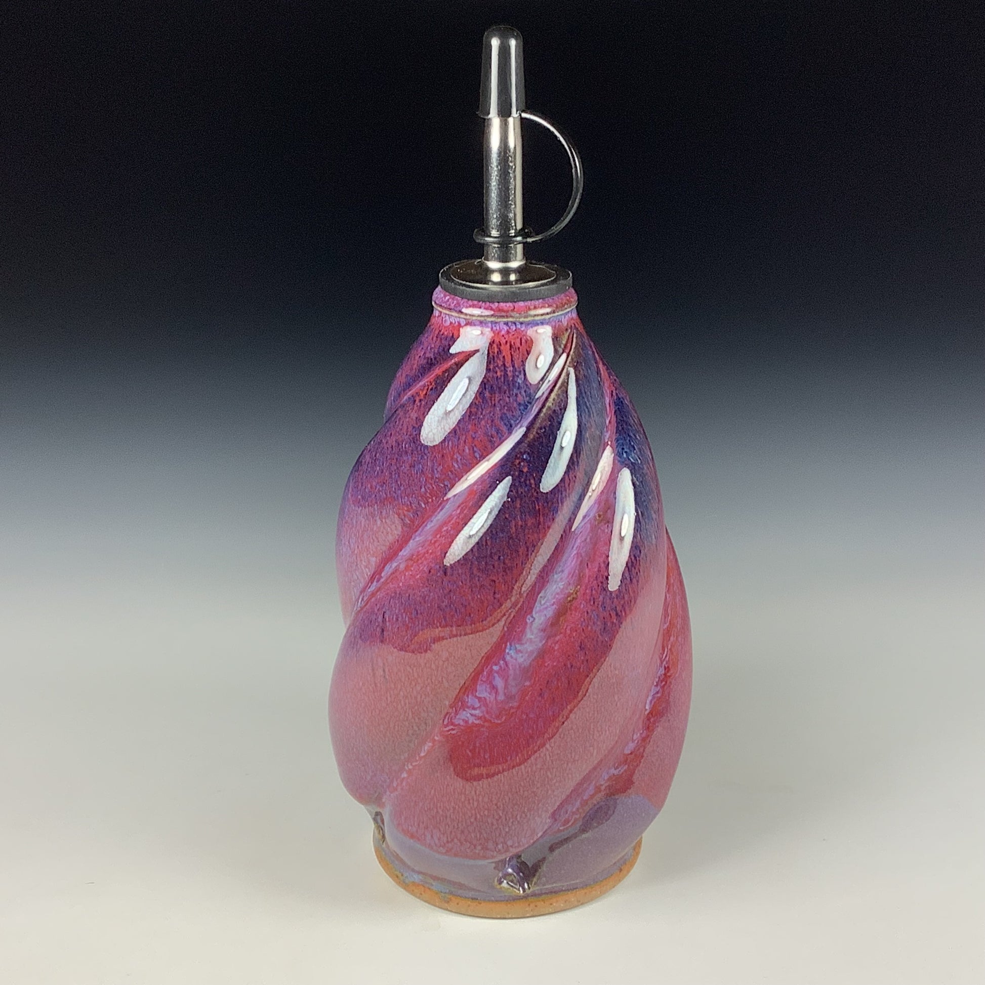 Ceramic olive oil dispenser oil bottle oil cruet handmade stoneware pottery dinnerware kitchenware - Purple red twisty- item 3741