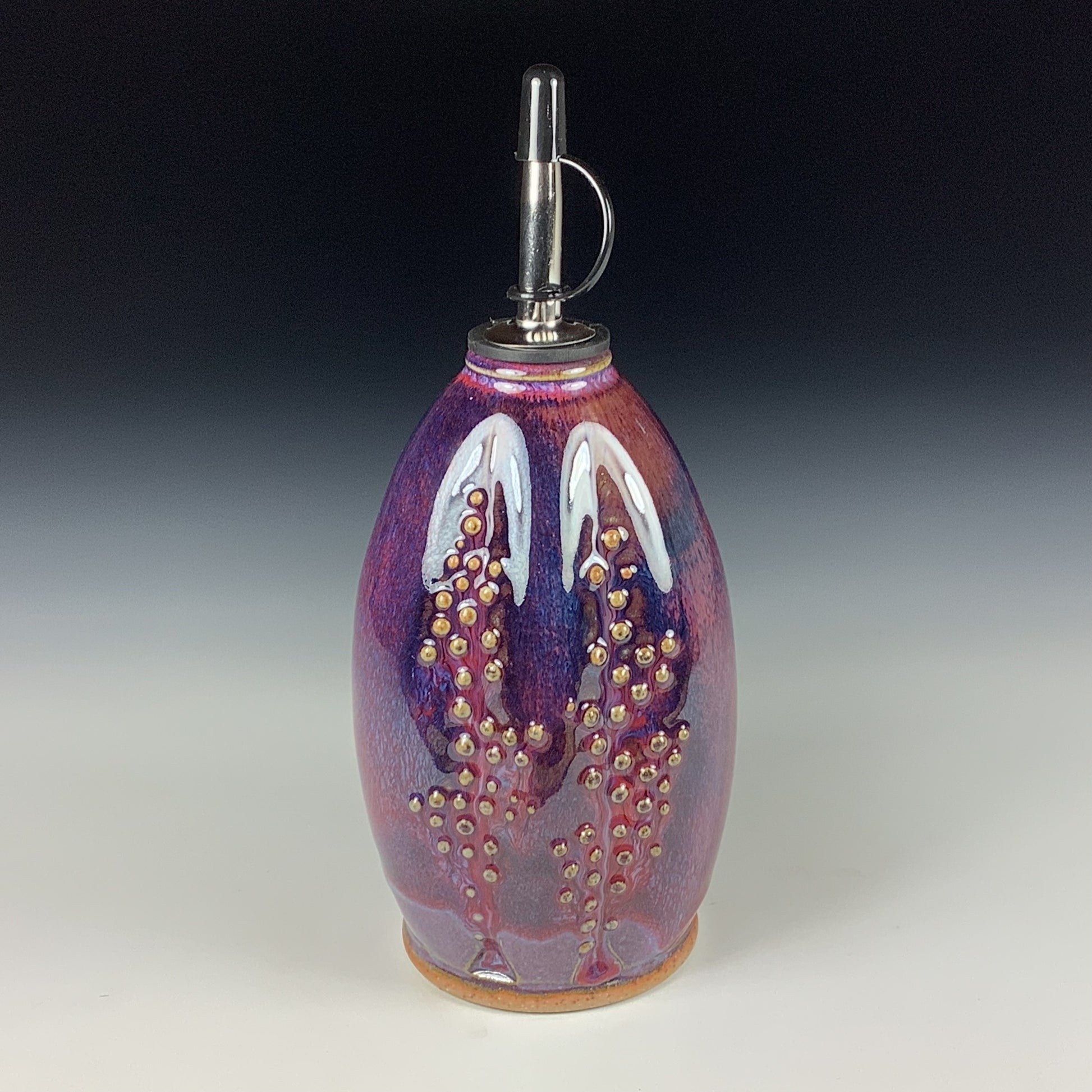 Ceramic olive oil dispenser oil bottle oil cruet handmade stoneware pottery dinnerware kitchenware - Purple red slip dotted bump - item 3742