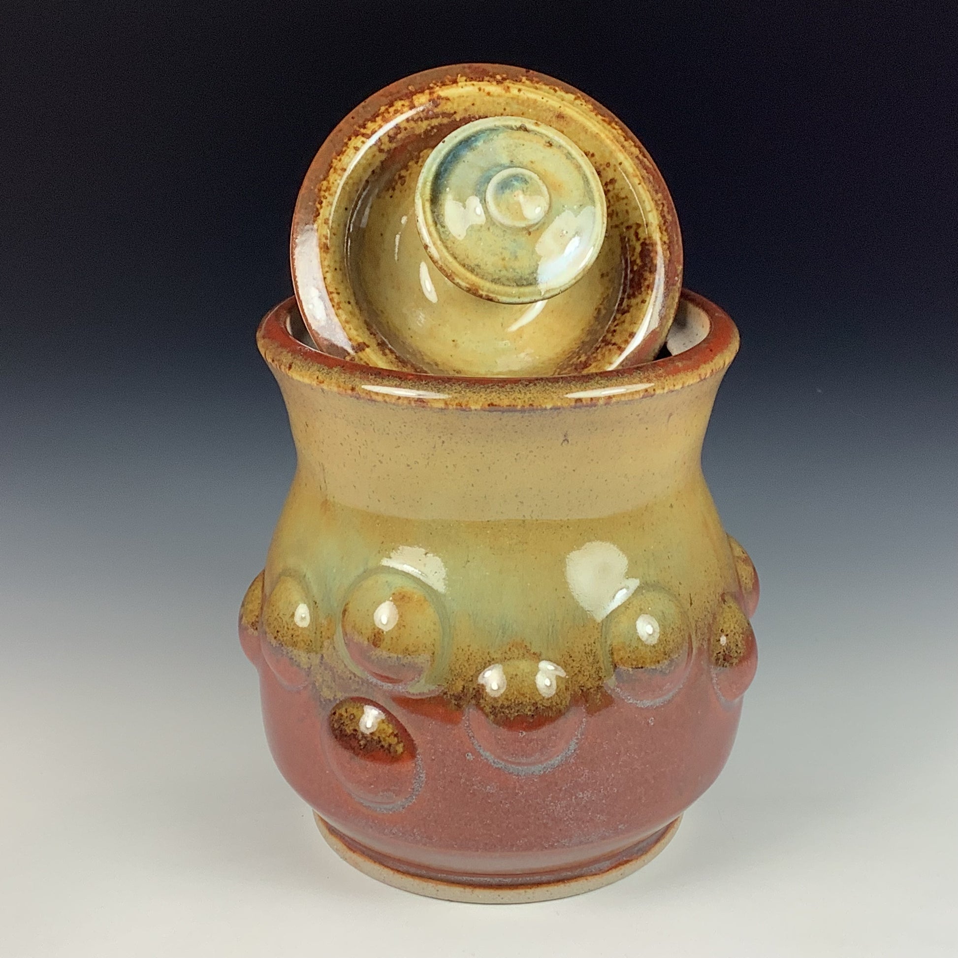Handmade stoneware art ceramic pottery sugar jar - iron red with white ash bump item 3886