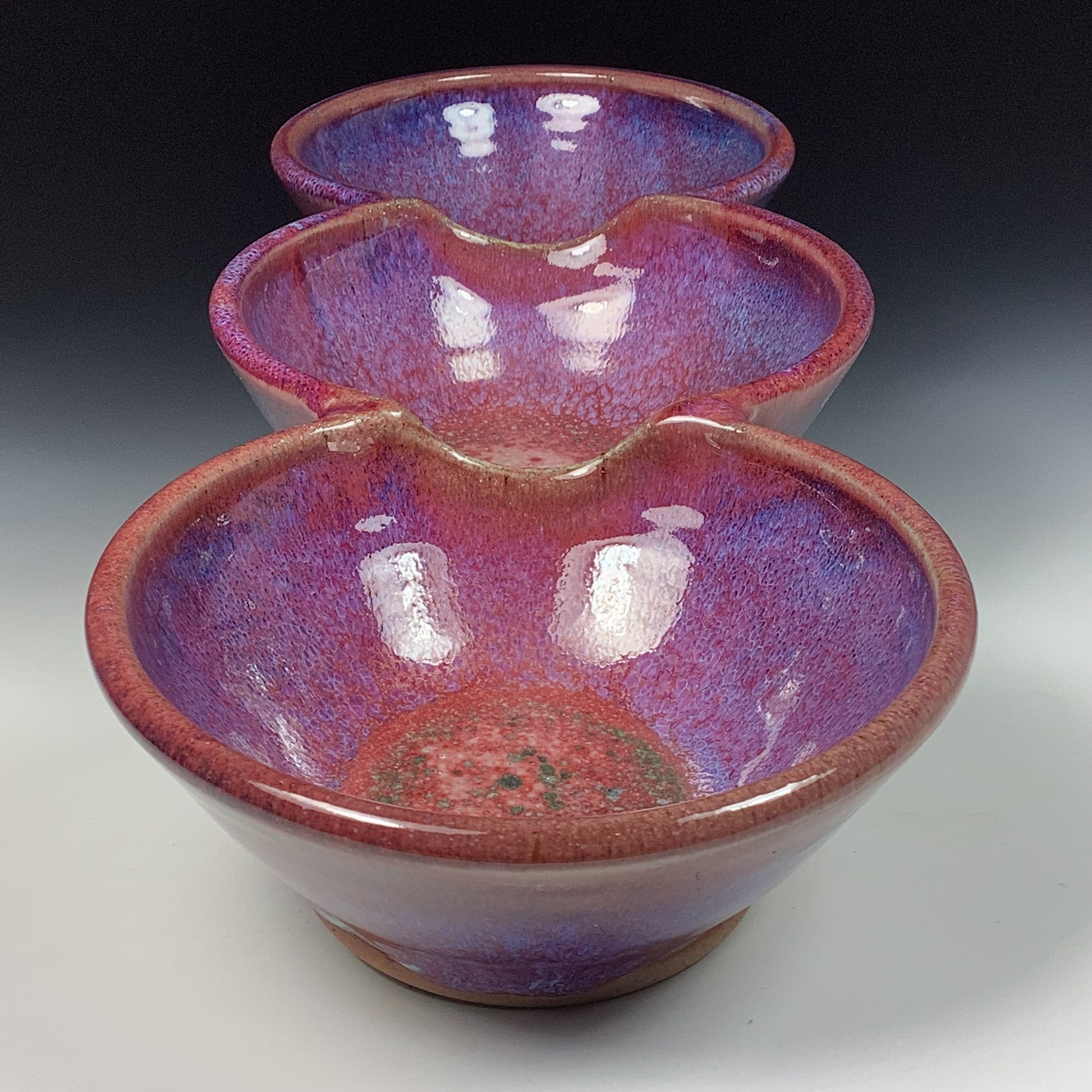 Handmade ceramic artisanal pottery bowls dinnerware stoneware serving bowls - Purple tri-bowl 3817